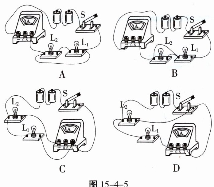 8. 如图 15 - 4 - 5 所示四个电路中,电流表能测量通过$ L_2 $的电流的是(