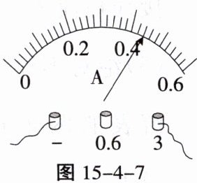 10. 如图 15 - 4 - 7 所示,在练习使用电流表的实验中,某同学发现电流表(0 ~ 3 A)的量程刻度值标示不清,根据你对电流表的了解,电流表的正确读数是(