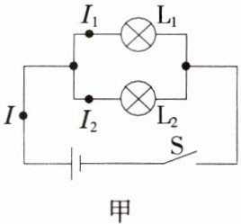 11. 小华同学在“探究并联电路电流规律”的实验时,根据图 15-5-8 甲连接好实物,用电流表分别测出 $ I $、$ I_1 $、$ I_2 $ 的电流,改变小灯泡的规格,重复实验,记录数据如下表。