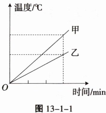 8. 质量相等、初温相同的两种液体,分别用两个相同的电加热器加热(不计热损失),加热过程中温度变化如图 13 - 1 - 1 所示,则下列判断正确的是(