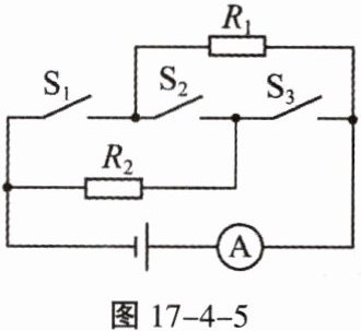 9. 在如图17-4-5所示的电路中,电源电压$U为6V$且保持不变,定值电阻$R_{1}等于6\Omega$,定值电阻$R_{2}等于4\Omega$。求: