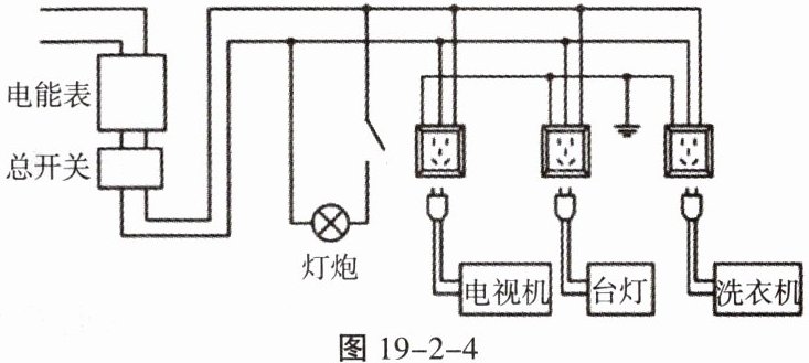 4. 如图19-2-4所示,为小明家的电路简化后的示意图,对于这个家庭电路,下列说法中正确的是(
