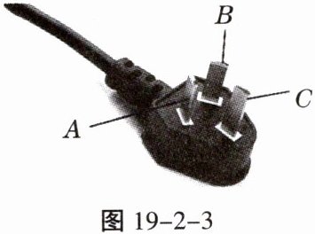 3. 如图19-2-3所示,A、B、C是家用电冰箱三线插头的三个插脚,关于这三个插脚的说法正确的是(
