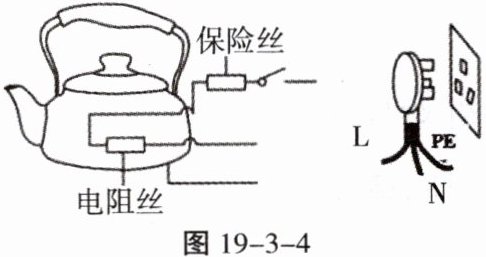 4. 在图 19 - 3 - 4 中把插头与电水壶正确连线。