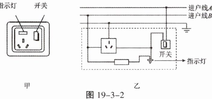 2. 图 19 - 3 - 2 甲是三孔插座,乙是该插座接入我国家庭电路中的电路图且符合安全用电原则。下列说法正确的是(