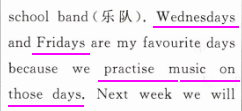 星期三和星期五,练习(弹奏)音乐,可知是一周两次。