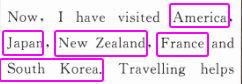美国,日本,新西兰,法国,韩国。一共是5个国家。