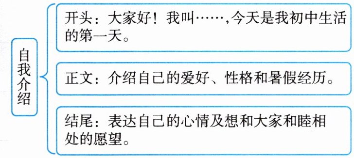 开头:大家好!我叫……,今天是我初中生活的第一天。