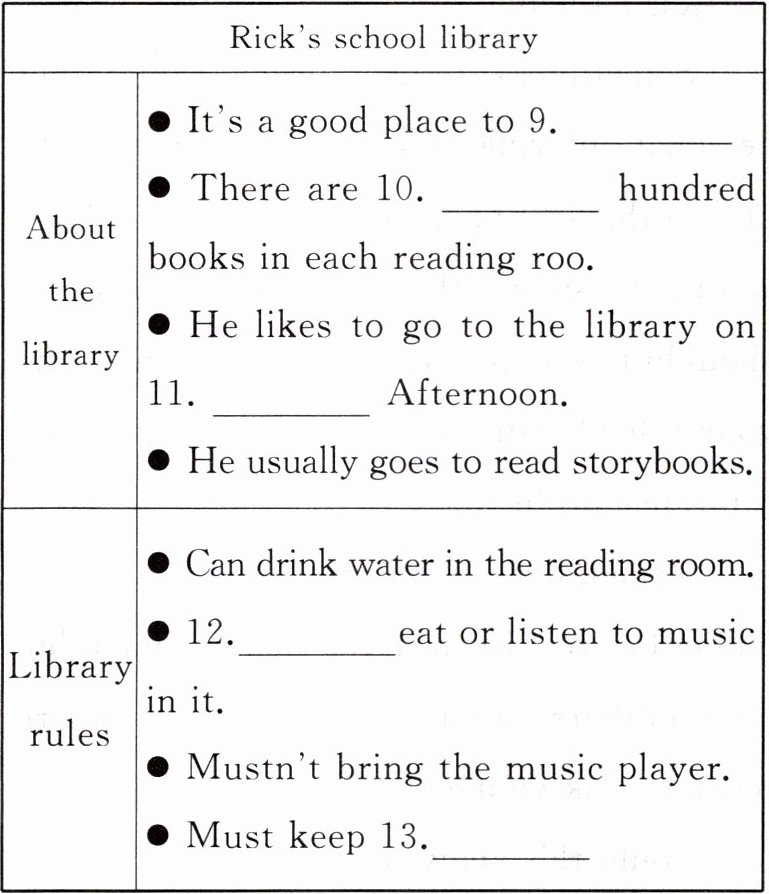 你的转述可以这样开始:Let me tell you something about Rick's school library....