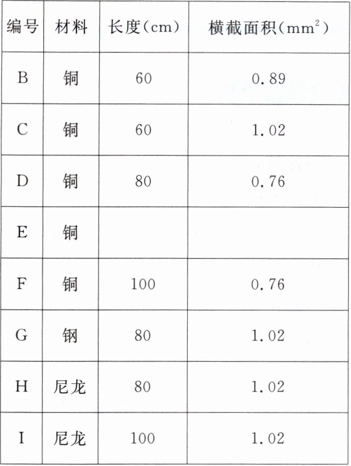 (3)表中有的材料规格还没有填全,为了验证猜想三,必须知道该项内容,请在表中填上所缺数据。