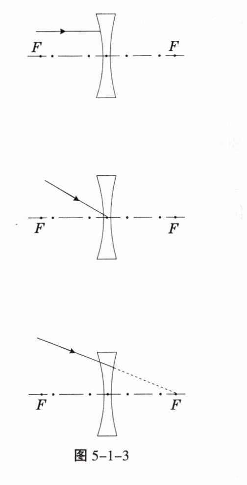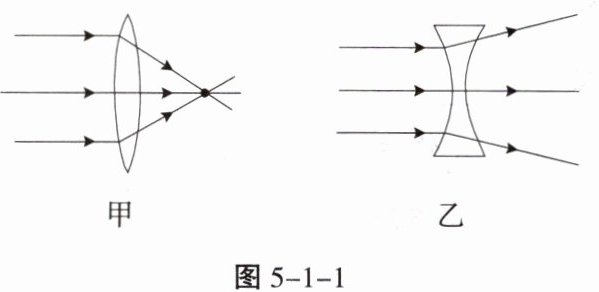 1. 如图 5-1-1 甲、乙所示是让平行于透镜主光轴的几束光射向凸透镜、凹透镜后的情境。请回答: