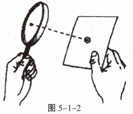 5. 小星同学利用太阳光测量凸透镜的焦距,方法如图 5-1-2 所示。他注意到让凸透镜正对阳光,但没有仔细调节纸片与透镜的距离,在纸片上的光斑并不是最小时,就测出了光斑到凸透镜中心的距离$L$,那么,凸透镜的实际焦距(