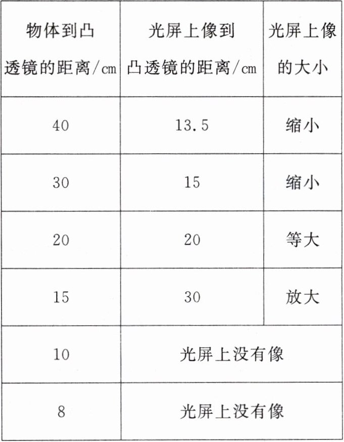 (1)分析数据可知,物体到凸透镜的距离越短,光屏上像的大小就越