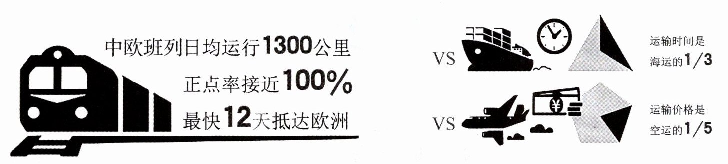 (1)说出与海洋运输、航空运输相比,中欧班列运输方式的优势。