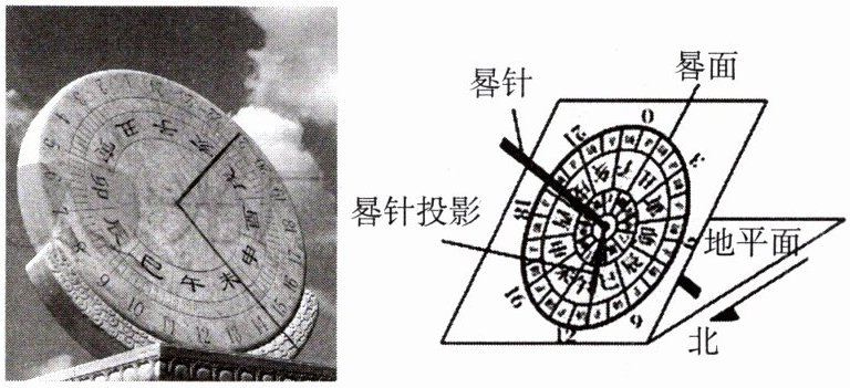 (日出/正午/日落),此时晷针影子大致朝向 方。(3)一天中从日出到日落,晷针投影长度变化规律为
