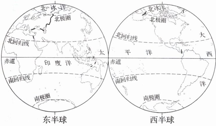 同学们在地理课上通过实践活动探究“世界海陆分布”。下图为“东半球和西半球海陆的分布图”。