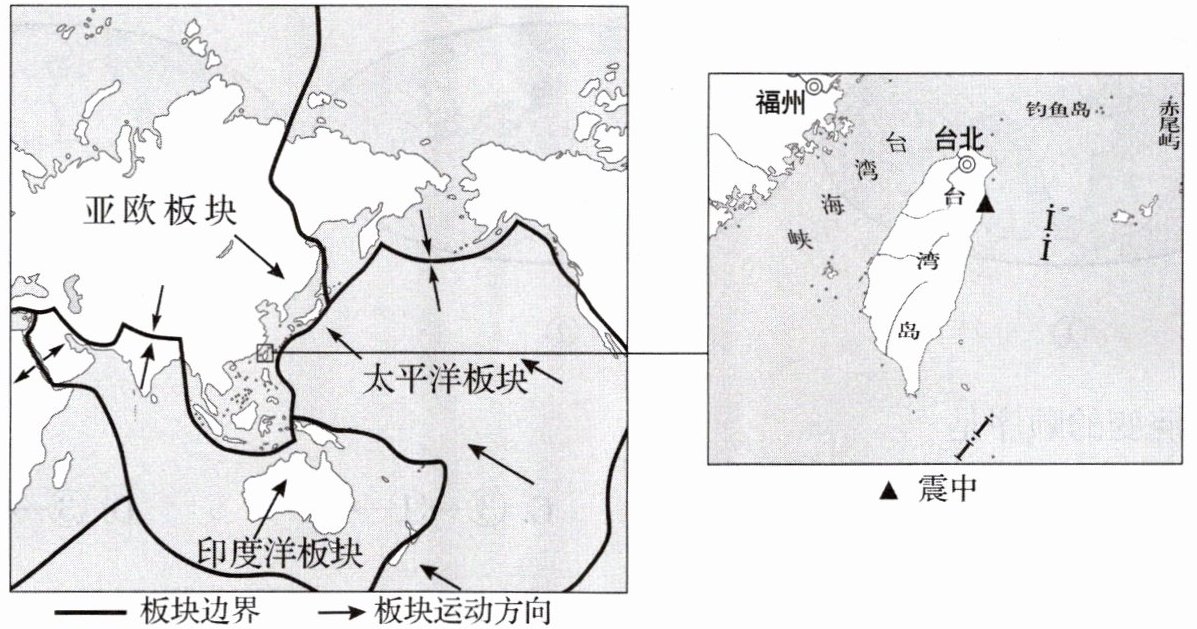 2024 年 4 月 3 日,位于我国台湾省花莲县近海海域发生里氏 7.3 级地震。下图示意此次地震中心的位置。据此完成 10~12 题。