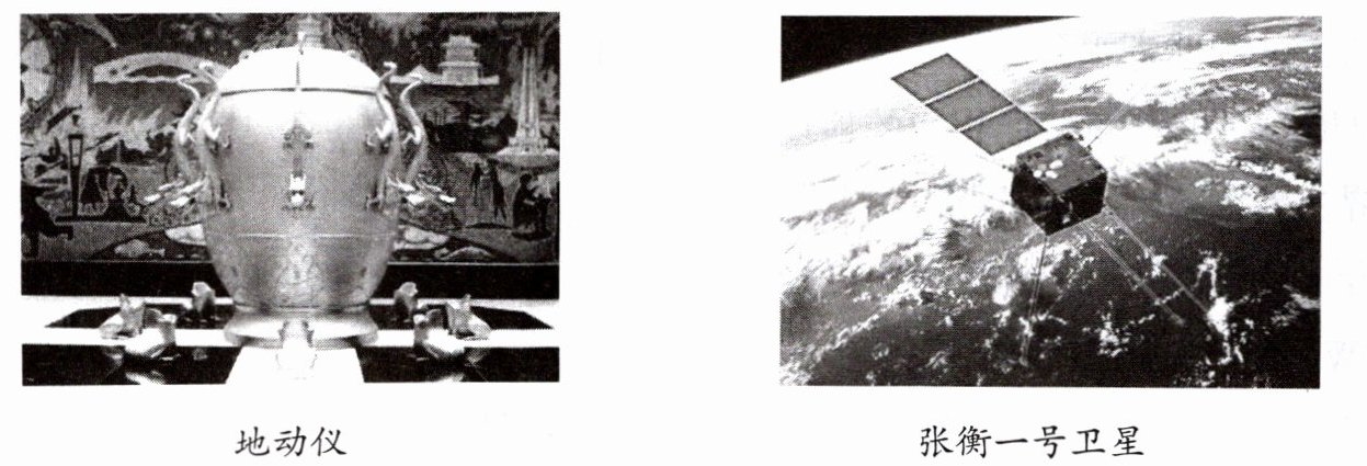 公元 132 年,张衡制成地动仪。这是人类文明史上用科学仪器的第一次成功尝试,比欧洲人制造出功能相类似的仪器要早 1700 多年。2018 年 2 月 2 日,我国的张衡一号卫星顺利升空,可为监测和分析地震提供技术支持。中国是一个多地震的国家,从古到今,我们都在做着监测和分析工作,时刻准备采取应急措施。下图为地动仪和张衡一号卫星的景观图。据此完成 7~9 题。