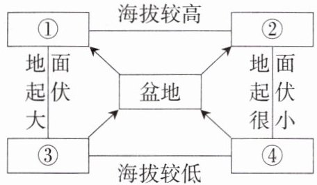 陆地表面有五种基本地形类型,下图为“五种基本地形类型的区别与联系示意图”。据此完成 9~10 题。
