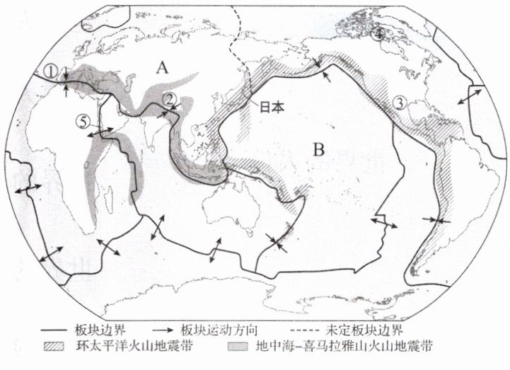 板块的交界处,地壳比较活跃。(3)⑤处为红海,它的面积在不断地扩大,是因为