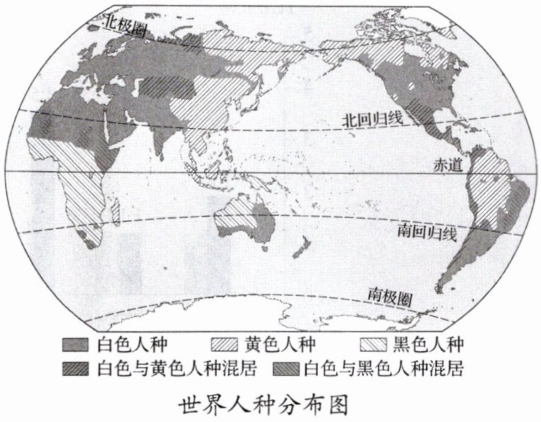 当地时间 2024 年 1 月 1 日,英国伦敦举办元旦大游行活动,其中由华人组成的方队舞动龙狮,成为伦敦街头一道亮丽的风景线。下图为“世界人种分布图”。据此完成 7~10 题。