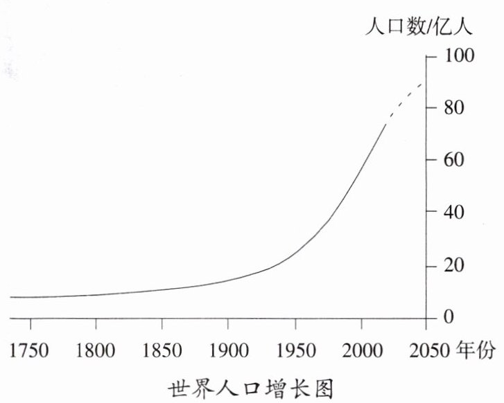 (3)右图为“世界人口增长图”,图中可以看出,在 18 世纪以前,人口增长十分