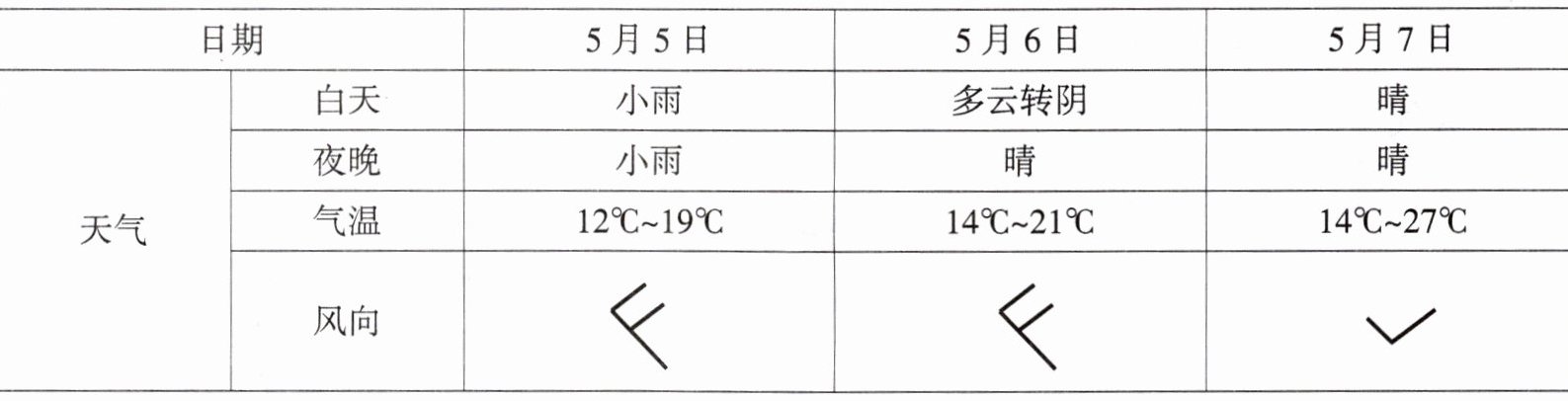 5. 根据五一假期的天气情况,当地人们适宜开展的活动是(