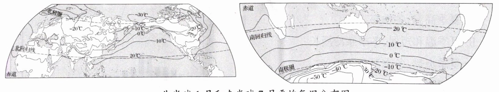 读“北半球 1 月和南半球 7 月平均气温分布图”,完成 4~6 题。