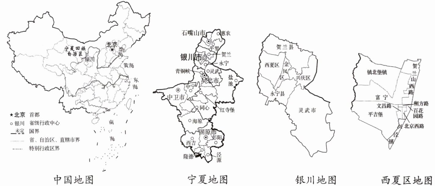 )A. 中国地图 B. 宁夏地图 C. 银川市地图 D. 西夏区地图