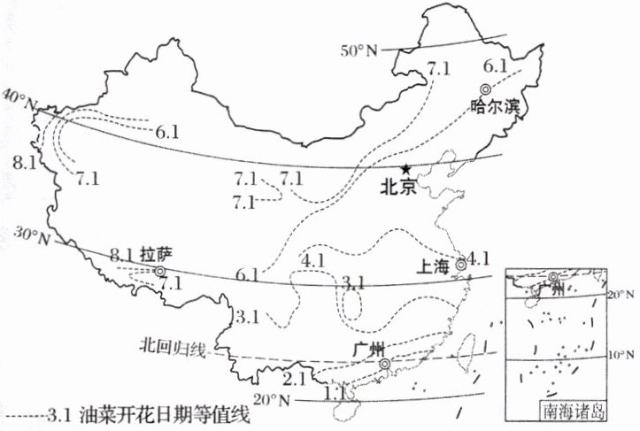 9. 导致从南到北油菜花开花时间规律分布的主要原因是(