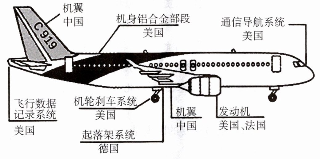 2. C919 客机配件来源于不同国家,这一现象说明(