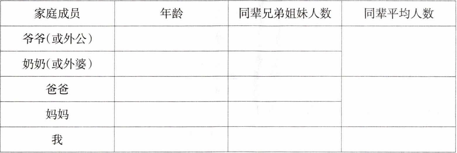 。5. 调查家庭中近几代人口状况,完成下表。