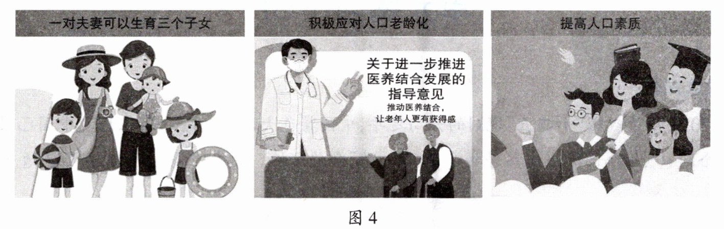 7. 结合第5题的分析结论,说明我国实施图4中人口政策的必要性。(说明1~2个人口政策即可)