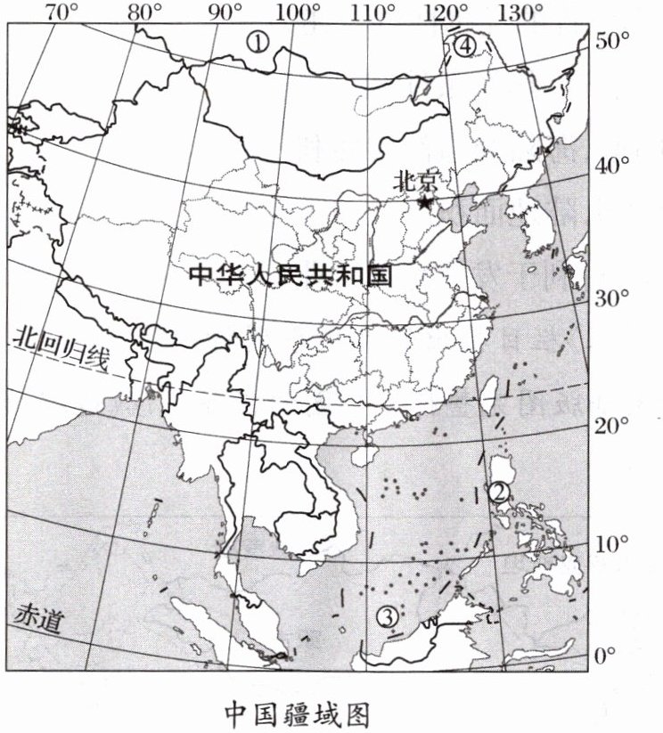 (2)我国邻国及隔海相望的国家众多,图中①是