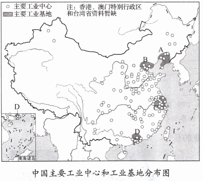 影响工业的因素有很多,如原料、市场、交通、科技、能源、劳动力等,这也造成我国工业空间分布不均。读中国主要工业中心和工业基地分布图,完成 7 - 9 题。