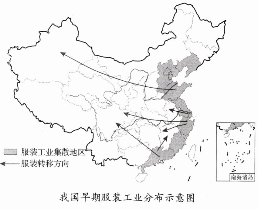 (2) 说出我国服装产业转移的整体方向,并分析原因。