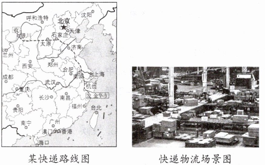 现在越来越多的人倾向于网上购物,2023 年我国快递业务量高达 1320 亿件,比 2022 年增长了 19. 4%。据图文材料,完成 5 - 6 题。