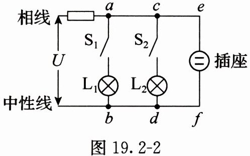 2. 家庭电路的电压为220V,其部分电路如图19.2 - 2所示,安装在相线上的保险丝是利用电流的