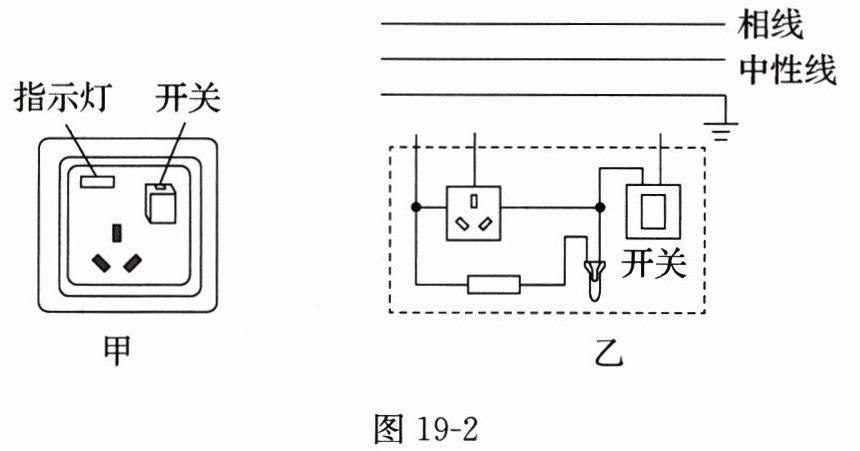 6. (广东中考)某款三孔插座如图19-2甲所示。请在符合安全用电原则的情况下,在图19-2乙中用笔画线表示导线将该插座接入家庭电路中。