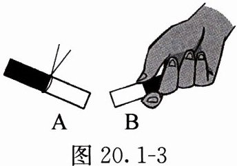 5. 如图20.1 - 3所示,把条形磁体A悬挂起来,将条形磁体B靠近它,发现条形磁体A被推开。这是由于(