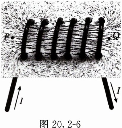 4. 在探究通电螺线管周围的磁场分布的实验中,在一块有机玻璃板上安装了一个用导线绕成的螺线管,在板面上均匀撒满铁屑,通电后轻敲玻璃板,铁屑的排列如图20.2-6所示。下列说法正确的是(