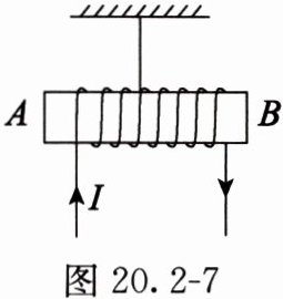 5. (多选)安培曾在法国科学院的例会上做过一个有趣的实验。如图20.2-7所示,将螺线管沿东西方向水平悬挂起来,给螺线管通电,下列说法正确的是(