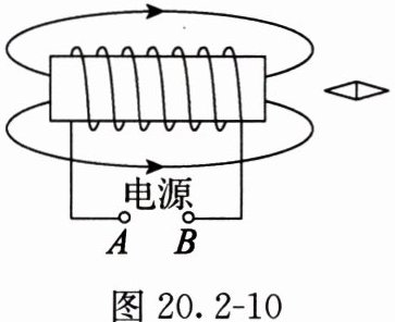8. 螺线管是汽车启动器的一个重要部件,驾驶员转动钥匙发动汽车时,相当于给螺线管通电。如图20.2-10所示,螺线管的左端为