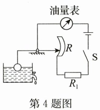 4. 汽车的油量显示电路如图所示,油量表实际上是一个______表,当加油时,油量表的示数将______。