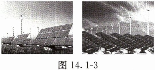 10.(多选)如图14.1-3所示,“风光互补发电系统”一般由风力发电机组、太阳能电池板、交直流逆变器、蓄电池组等组成。该装置巧妙利用了部分偏远地区光强时风弱、光弱时风强的自然特点,利用风能、光能互补,从而能基本保证发电功率的稳定,满足这些地区的电力使用需求。关于该“风光互补发电系统”,下列说法正确的是(