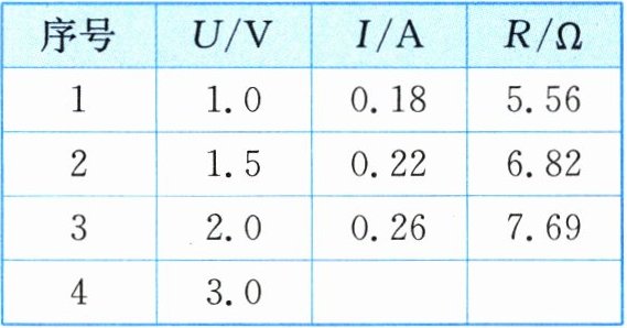 |序号| $U/V$ | $I/A$ | $R/\Omega$ |