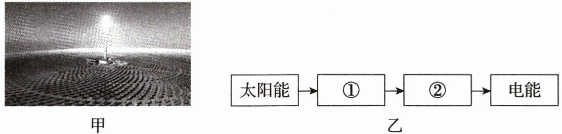 12. 我国在敦煌建造的熔盐塔式光热电站如图14.1-5甲所示,它利用阳光加热熔盐,再将高温的熔盐送入蒸汽发生器,从而产生高温高压的水蒸气,水蒸气推动汽轮机带动发电机发电,该过程的能量转化流程如图14.1-5乙所示,则(