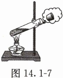 14. 如图14.1-7所示,在试管内装些水,用橡胶塞塞住管口,加热使水沸腾,水蒸气会把橡胶塞冲开,同时试管口有白雾形成。
