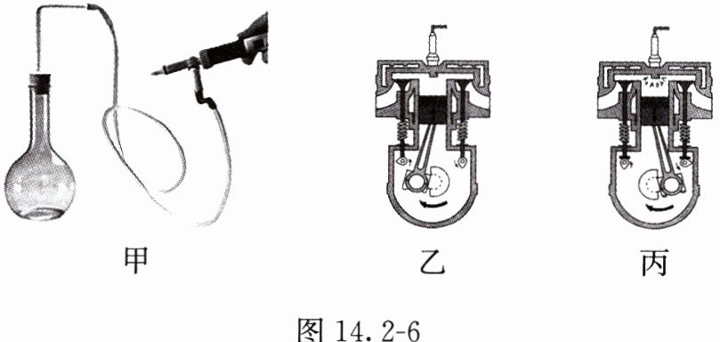 10. 如图14.2-6甲所示,该瓶内盛少量水,给瓶内打气后,瓶内空气推动塞子跳起来。关于这个塞子跳起的过程,下列分析正确的是(