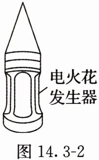 13. (多选)某老师的自制教具如图 14.3 - 2 所示。他在矿泉水瓶的侧壁上钻一个孔,把电火花发生器紧紧塞进孔中。实验时从瓶口喷入酒精并盖上锥形纸筒,按动电火花发生器的按钮,点燃瓶内酒精后,纸筒即刻飞出。关于此实验,下列分析正确的是(